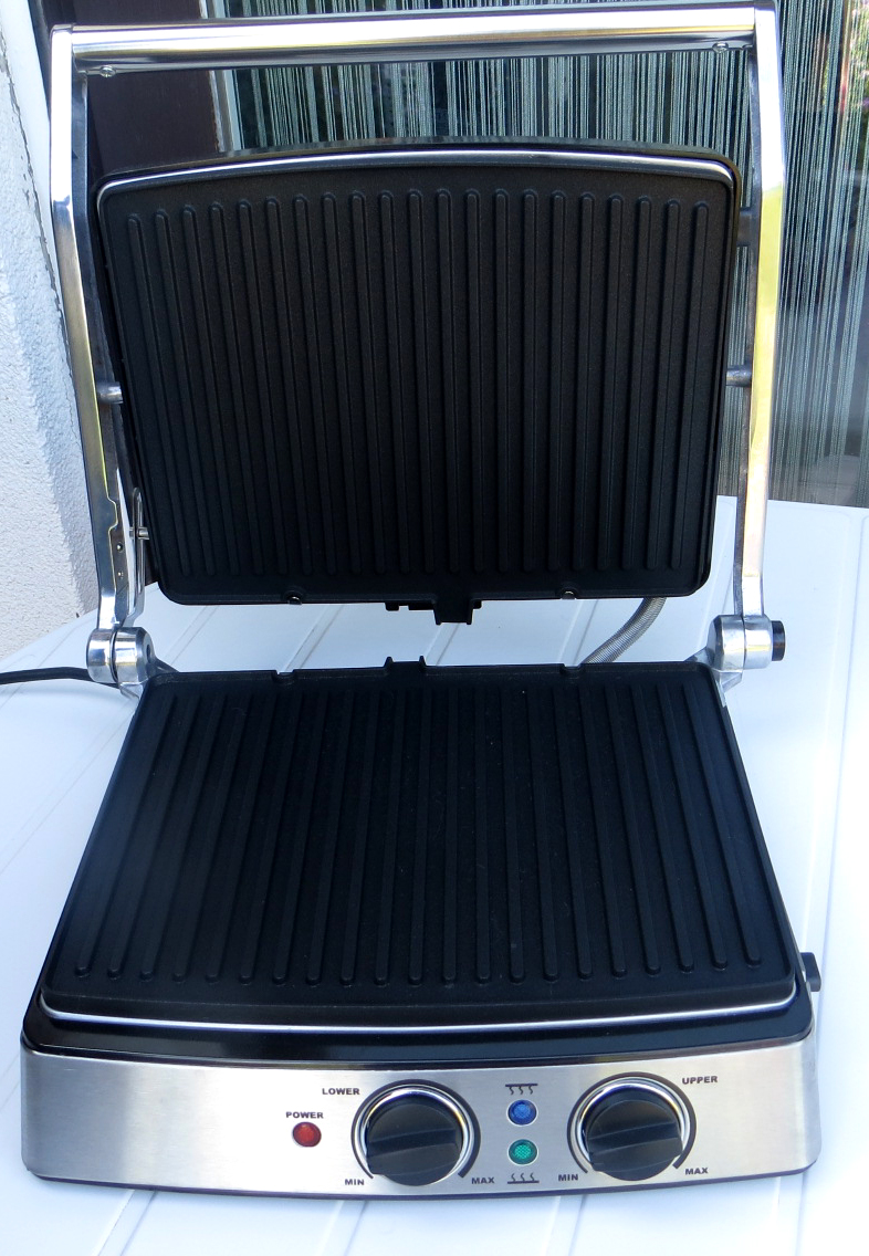 Für das geschlossene Grillen lässt man den Grill in seiner Ursprungsposition, klappt die obere Platte mit Hilfe des großen Hebels nach oben und nach Belegen des Grillguts wieder herunter. Diese Einstellung eignet sich insbesondere für schnelles, beidseitiges grillen. Steaks und Hamburger, aber auch Sandwiches lassen sich dadurch innerhalb von wenigen Minuten zubereiten. In meinem Test habe ich diese Funktion mit einem Sandwich ausprobiert. Nach wenigen Minuten war das Brot knusprig von beiden Seiten gegrillt und zum Verzehr fertig.
