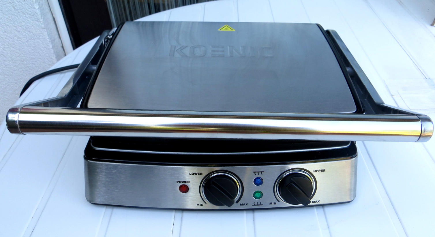 Als erstes habe ich den Grill von KOENIC getestet. Hierbei handelt es sich um einen vielseitig verwendbaren Kontaktgrill mit zwei Grillplatten und jeweils zwei getrennt einstellbaren Thermostaten. Durch das leichte Umbauen des Grills kann er zum einen für geschlossenes Grillen, aber auch für offenes Grillen bzw. in der sogenannten Barbecueposition verwendet werden.