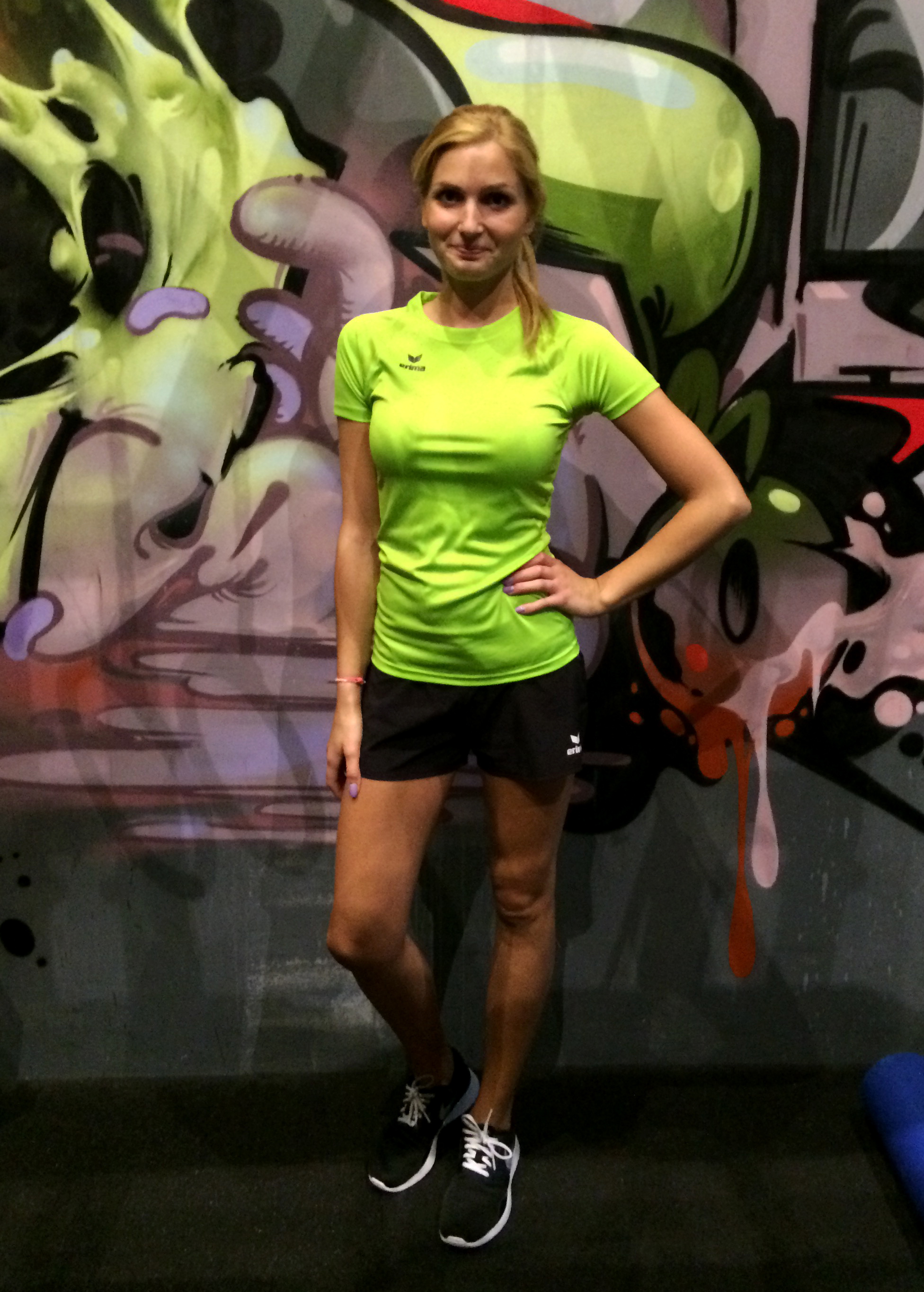 Nun komme ich zu dem Fitnessoutfit von ERIMA. Auch hier habe ich mich für die knallige Farbvariante der ERIMA Kollektion entschieden.